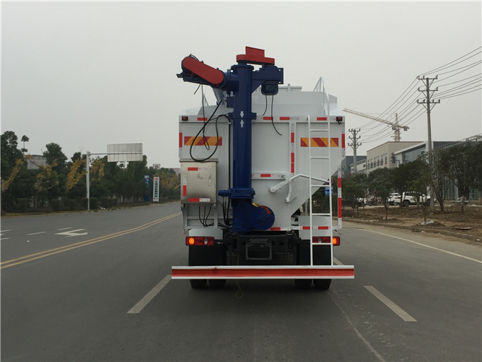上裝罐體罐體材質采用4mm優(yōu)質碳鋼板,整車3條絞龍,由3個5.5KW電機380V外接電源帶動,頂部絞龍用液壓控制舉升,可左右旋轉180°。罐體內分為叁個倉,可以獨立控制各分倉卸料順序和速度。(備注:此報價為標配,國產電機,德力西電柜)